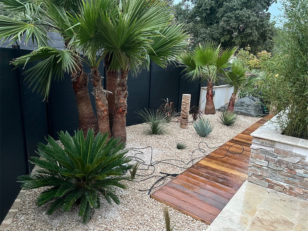 - Plantations variées : arbustes, fleurs, haies et arbres adaptés à votre environnement