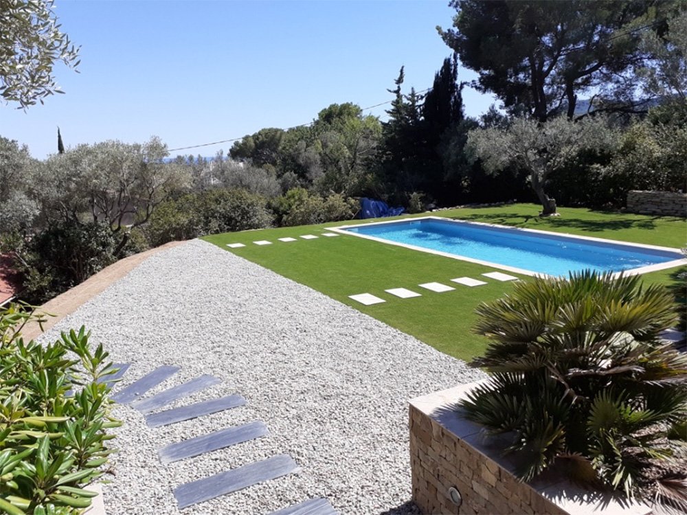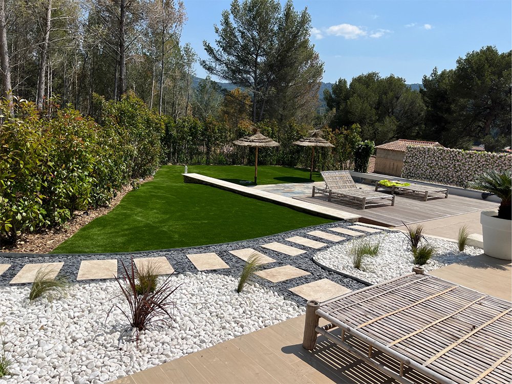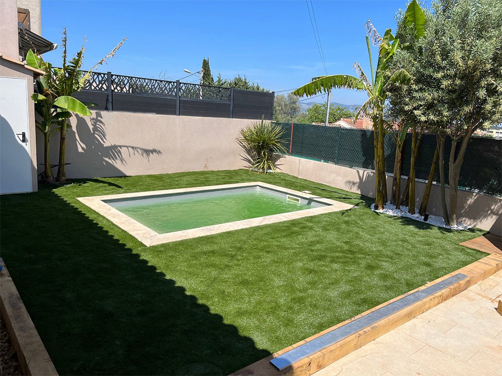 - Pose de gazon naturel ou synthétique : un extérieur verdoyant en toute saison
